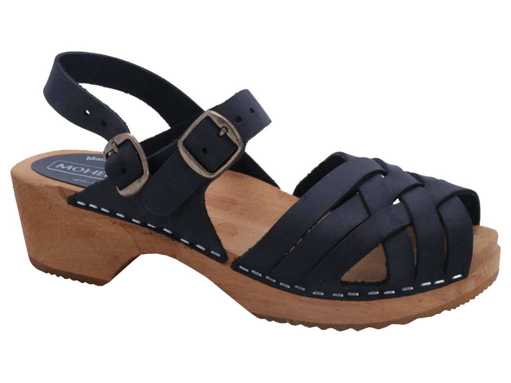 Klara is the elegant wooden sandal that combines style with function. With its open toe and braided front in genuine nubuk-leather, you get a sandal that is both breathable and easy to match with every look.
