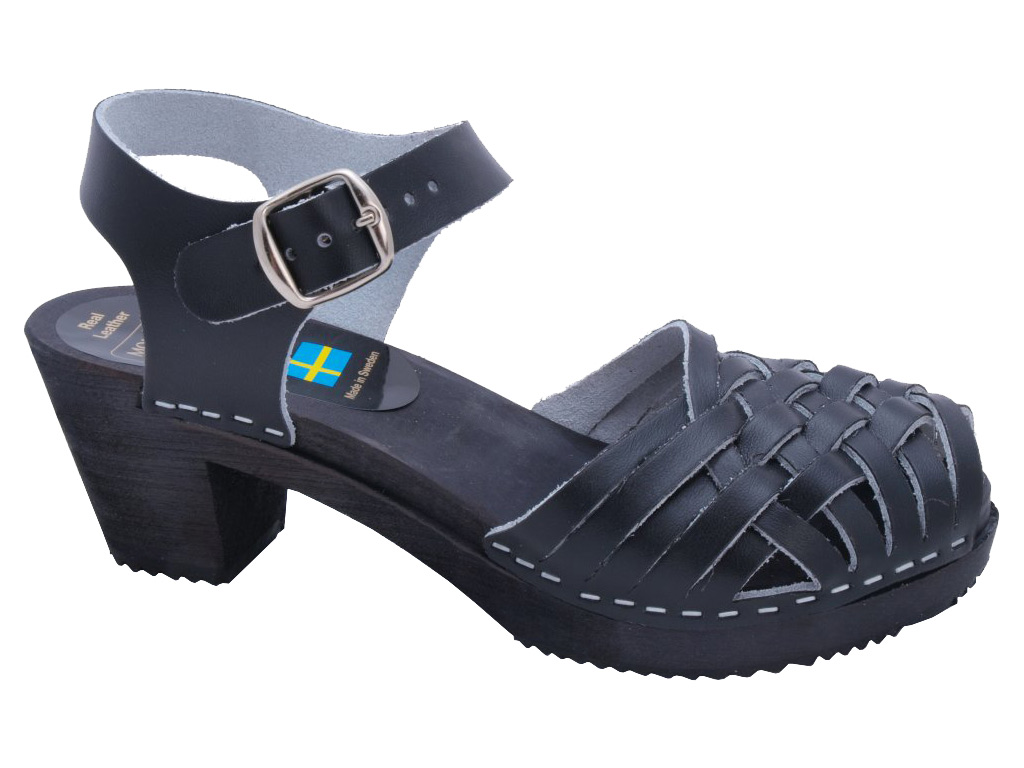 Made of genuine leather with a thin foil coating for extra protection, Sofie offers both a durable and elegant look. The black stained wooden base gives the sandal a timeless charm, while the 6.5 cm heel height provides a slight lift without compromising on comfort.
