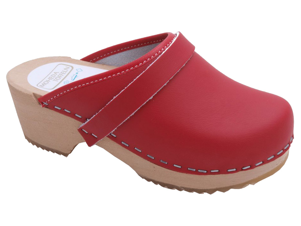 Ida is the iconic wooden slipper in a classic smé model, perfect for those who love timeless design and high comfort. The upper is made of red genuine leather with a protective surface layer that provides both durability and a beautiful finish.